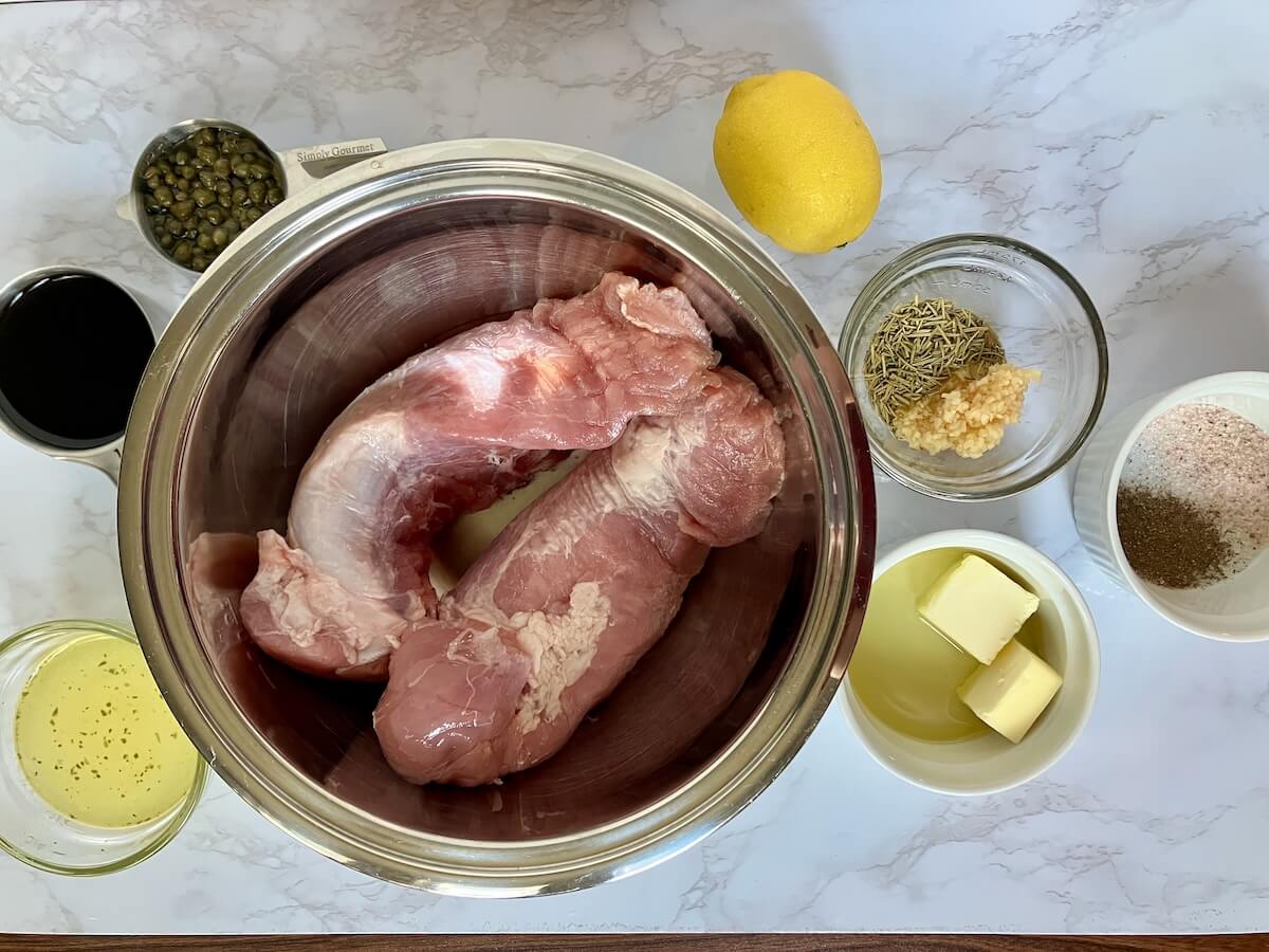 - Slice the pork tenderloin and top with the lemon butter caper sauce.